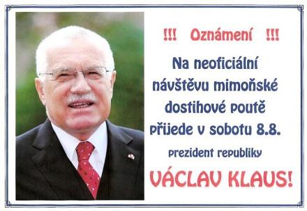 V sobotu po druhé hodině odpolední přijede pan prezident Klaus na Mimoňské dostihy.